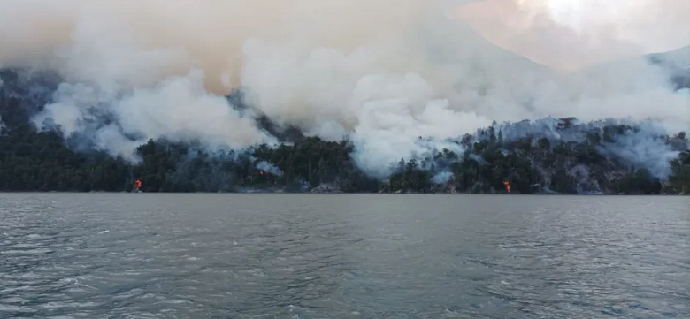 El incendio se desarrolla en el área sur del Parque Nacional Nahuel Huapi, en la zona de Brazo Tristeza, y ha sido denominado Arroyo Cretón-Brazo Tristeza, según se informó en el último comunicado de Parques Nacionales publicado anoche.