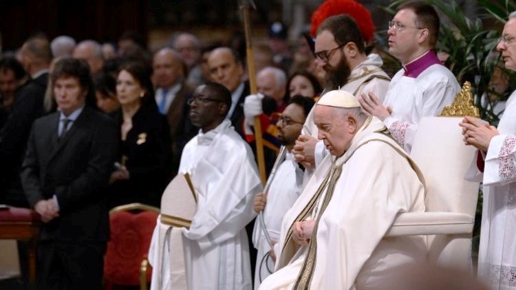 Miles de personas se congregaron en la Basílica de San Pedro para la celebración eucarística de casi dos horas de duración presidida por el pontífice y en la que estuvo, entre otras autoridades, el presidente Javier Milei, que fue buscado por muchos fieles para sacarse fotos.