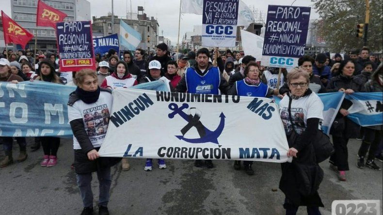 La movilización se dirigió desde las terminales 2 y 3 del Puerto y llegó hasta la sede de Prefectura donde se encontraban algunos de los familiares que no viajaron a Rawson y que permanecen en Mar del Plata a la espera de respuestas.