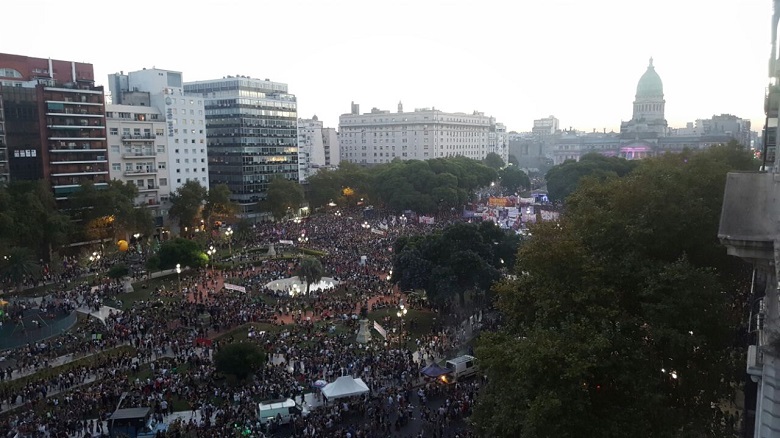 Miles de mujeres se reunieron por el Día Internacional de la Mujer, en el centro de Buenos Aires, frente al Congreso, para manifestarse por los reclamos históricos como la ley del aborto, la lucha contra la violencia de género, la igualdad de oportunidades y la prevención del femicidio.