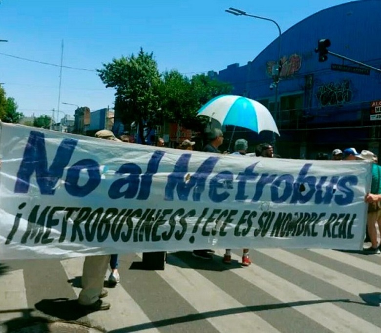 Desde que fue anunciado el Metrobus, vecinos y comerciantes iniciaron una campaña de rechazo que incluyó manifestaciones callejeras todas las semanas en la zona, así como también la presentación del amparo.