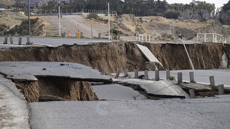 En la mañana de este miércoles cedió la calzada sobre ruta 3 en la zona del Cerro Chenque produciéndose una gran grieta que partió en dos la transitada avenida de Comodoro Rivadavia.