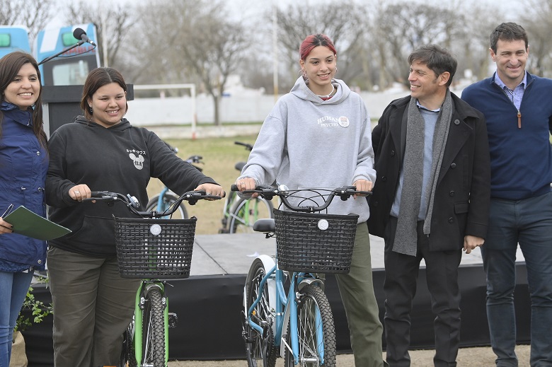 El gobernador bonaerense, Axel Kicillof, afirmó hoy que "el Gobierno provincial está presente con políticas públicas que dan respuestas", al encabezar hoy en la localidad de Pellegrini el acto de puesta en funcionamiento de una ambulancia y de entrega de bicicletas a estudiantes del nivel secundario que participaron del programa Movilidad Sustentable.