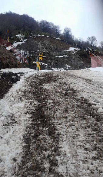 La placa de tierra se desprendió debido a la gran cantidad de agua que cayó en la región desde hace dos días. El deslave afectó una de las pistas nuevas, denominada Cascada. En esa zona hay cañones para la fabricación de nieve artificial. Rápidamente trabajadores y equipos trabajaron en el lugar para retirar todo el material desprendido.