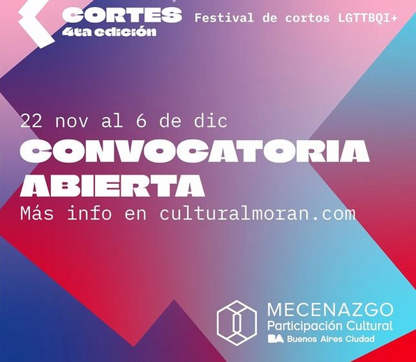 Cortes, el festival de cortos LGBTTQI+, abrió su convocatoria para producciones a proyectarse en el evento que tendrá lugar del 22 de noviembre al 6 de diciembre en el porteño Cultural Morán.