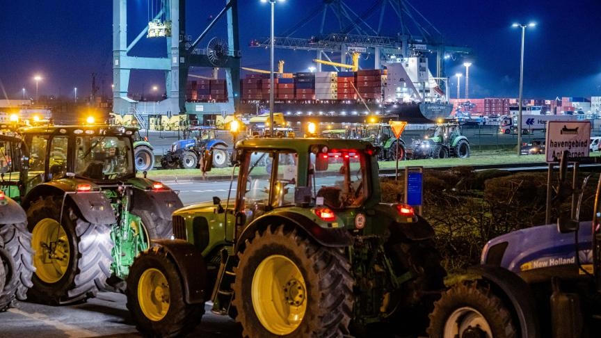 Bélgica: Agricultores bloquean el puerto Amberes