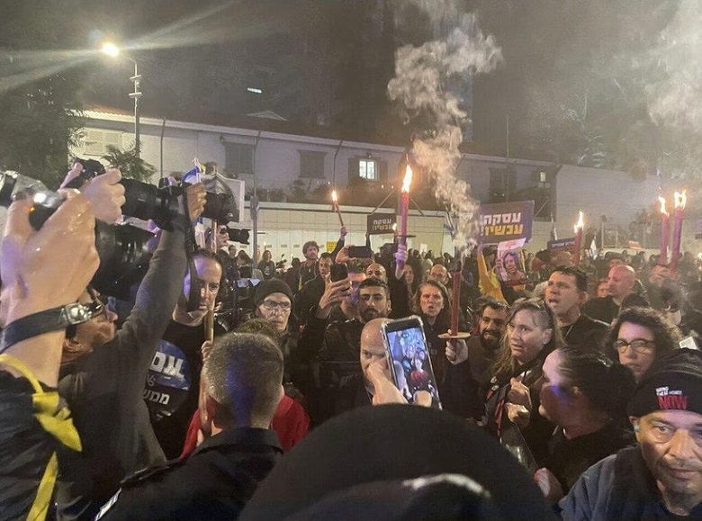 En Tel Aviv, 18 personas fueron detenidas después de que manifestantes con antorchas intentaron romper una barricada policial en la calle Kaplan.