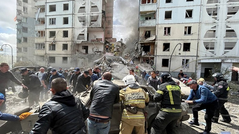 Un ataque ucraniano destruye parcialmente un edificio residencial de 10 pisos en Bélgorod