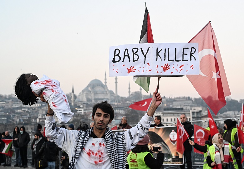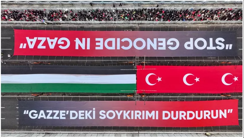 En la ciudad turca de Estambul, en la mañana de este miércoles 1 de enero cientos de miles de personas se congregaron en el emblemático puente de Gálata para manifestarse en apoyo a Palestina en su conflicto contra Israel, informó Anadolu.