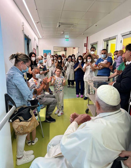 Durante la visita, que se comunicó acompañada de las primeras imágenes oficiales del Papa en más de una semana, Francisco recibió un aplauso de los pacientes y sus familias, según observó en las fotos del Vaticano.