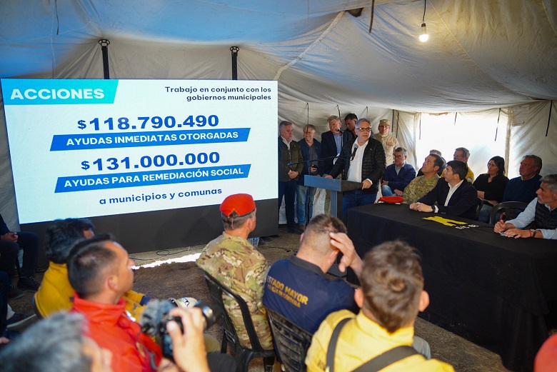 “Cuando suceden estas cosas uno advierte el valor de la solidaridad y del Estado, porque hay personas sufriendo y se debe actuar ya”, sostuvo Llaryora, quien agradeció el apoyo de las provincias que enviaron recursos para la lucha contra los incendios y del Gobierno nacional.