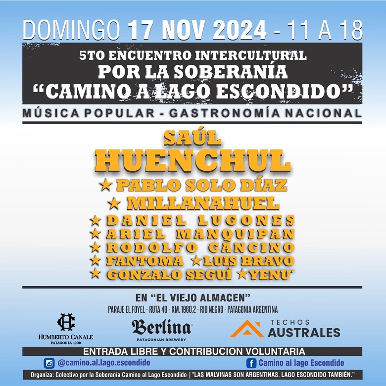 "Las Malvinas son Argentinas, Lago Escondido también", anunciaron el 5to. Encuentro Intercultural por la Soberanía, Camino a Lago Escondido.