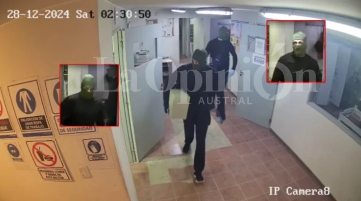 Este diario tuvo acceso exclusivo a una cámara de seguridad que registra el momento preciso del robo. El metraje que tiene exactamente un minuto de duración da cuenta del trabajo meticuloso de los delincuentes. La cámara enfoca el ingreso al laboratorio. Son las 2:30:08. Allí, del lado derecho, se ve a los malvivientes buscando algo. En una silla, está un empleado tratando de “cooperar”, posiblemente por el miedo.