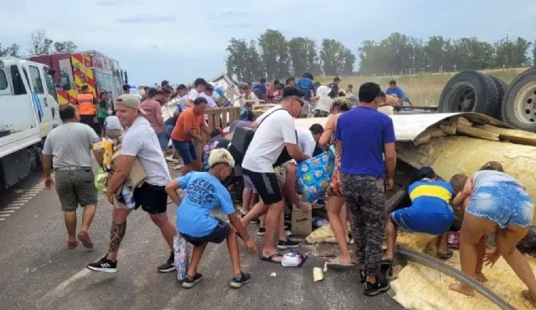 Fue entonces que en cuestión de minutos comenzaron a arribar decenas de vecinos que rodearon la escena del choque, y mientras las autoridades llevaban adelante el corte total de la ruta durante varias horas, empezaron el saqueo.