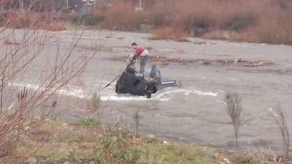 Sin embargo, no calcularon la fuerza de la correntada –producto de las lluvias-, que incrementó notoriamente el caudal, y terminó por arrastrar y dar vuelta el utilitario.
