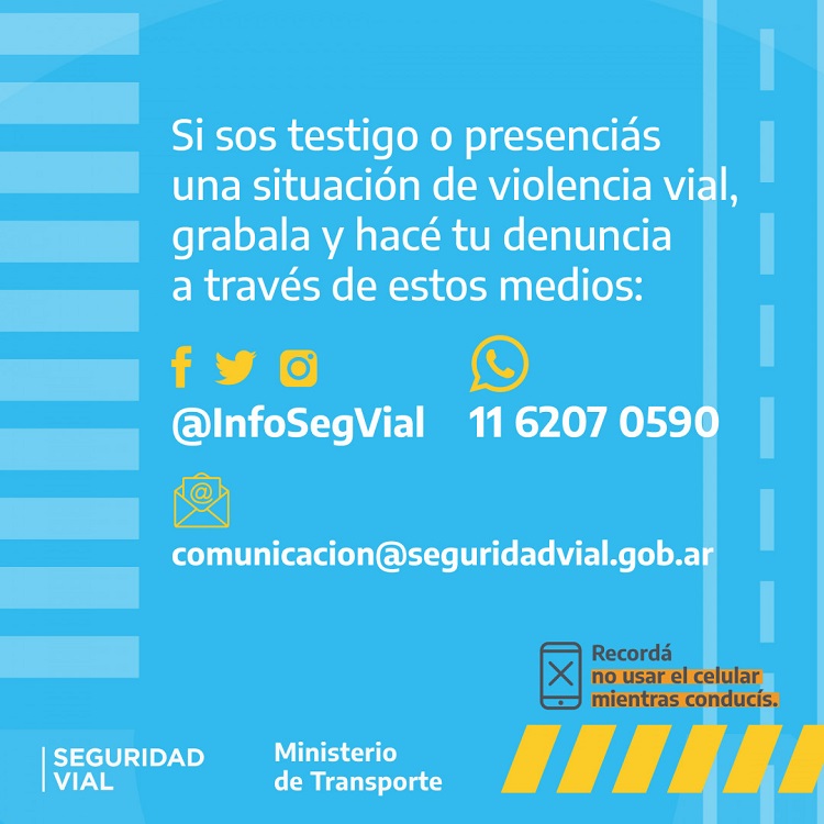 Para denunciar hechos de violencia vial, la ANSV habilitó la línea de WhatsApp 011-6207-0590, donde las y los ciudadanos pueden realizar su denuncia enviando el material que graben identificando al responsable.