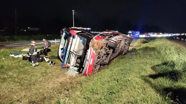 Entre Ríos: Un colectivo de egresados volcó en la Autovía Gervasio Artigas