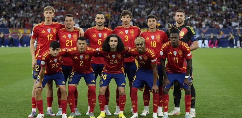 España: Unai Simón; Pedro Porro, Robin Le Normand, Dean Huijsen, Marc Cucurella; Mikel Merino, Martín Zubimendi, Pedri; Lamine Yamal, Mikel Oyarzabal, Nico Williams. DT: Luis De La Fuente.